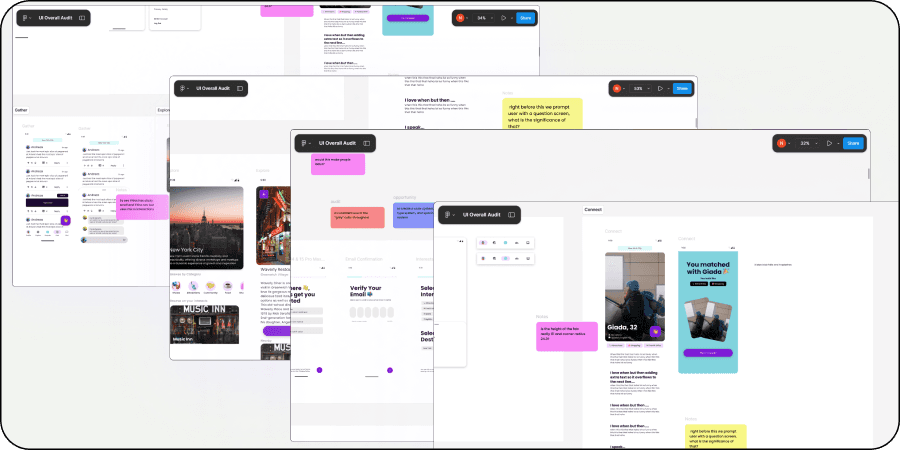 I conducted a detailed audit of the app and design system, documenting insights directly in Figma and creating space for team feedback. Collaborated closely with CEO, product, and engineering to identify gaps and align on expectations for the app.