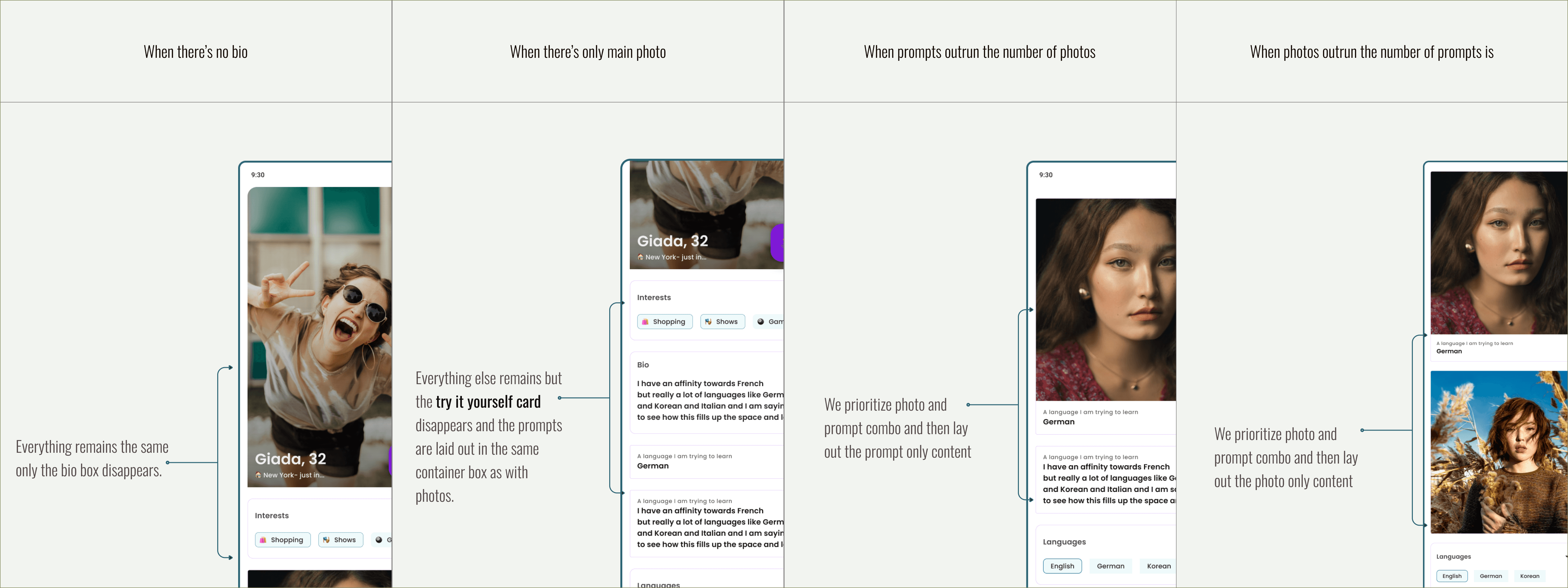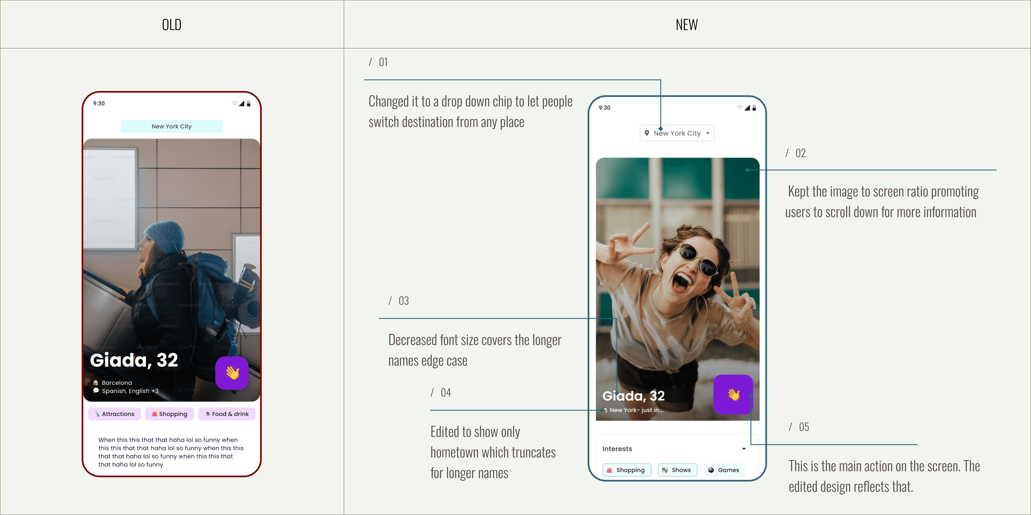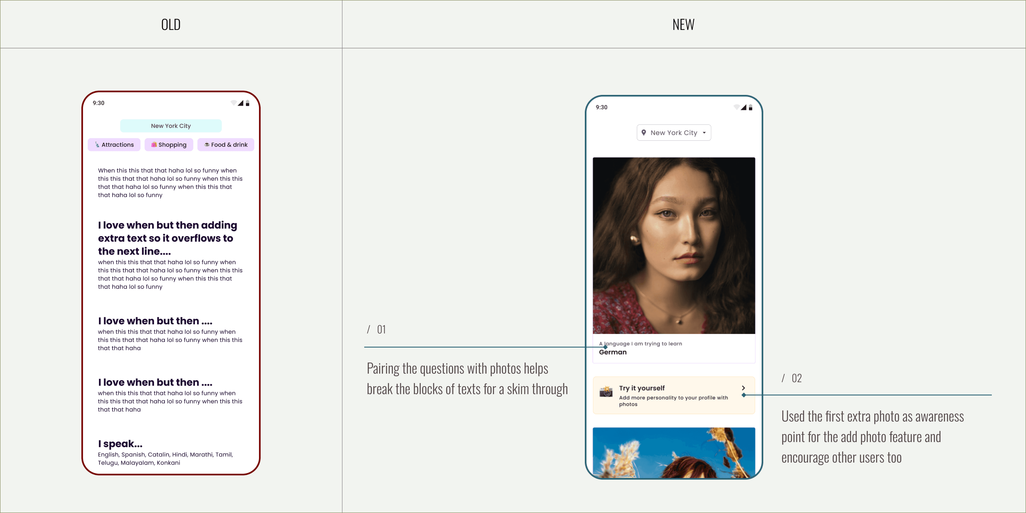 We learned from the user interviews that people would like to see more photos of other profiles to help them decide which profile to connect with.