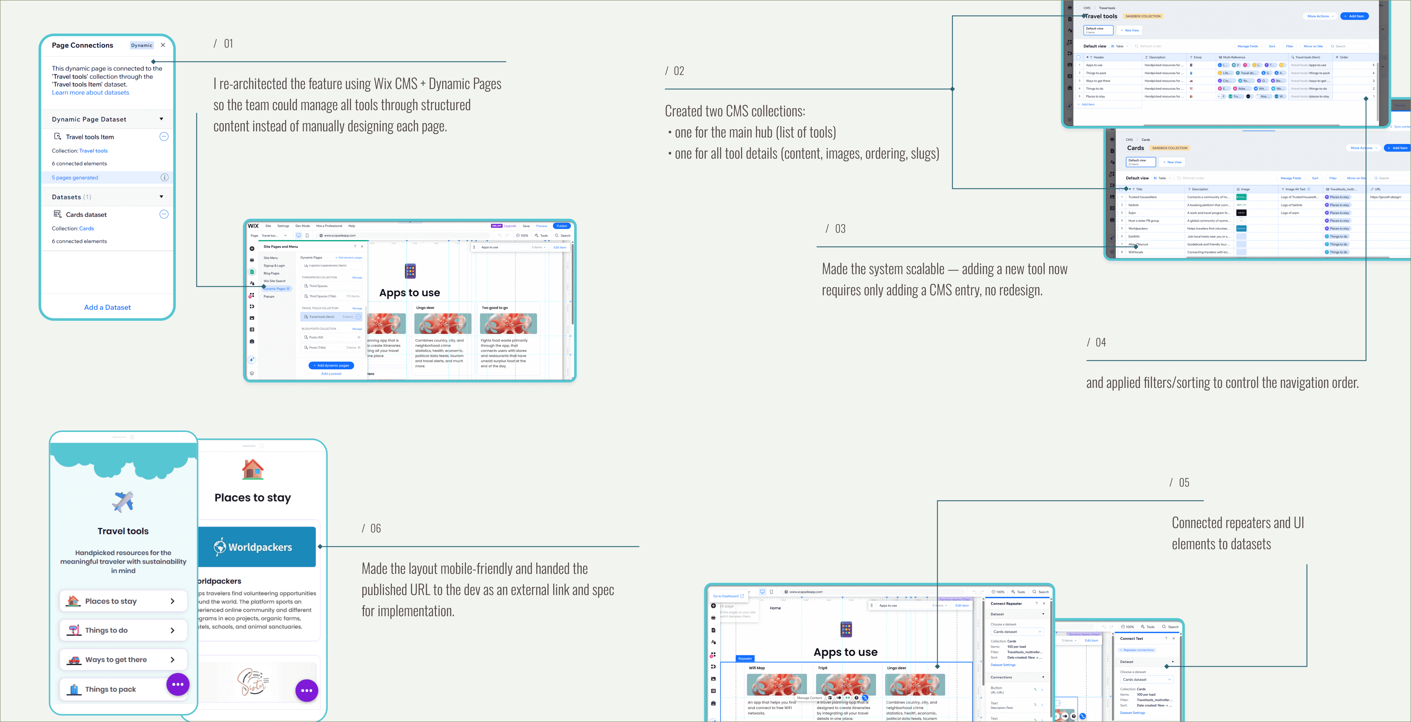 Built a lightweight, CMS-driven Travel Tools hub and dynamic detail pages in Wix.