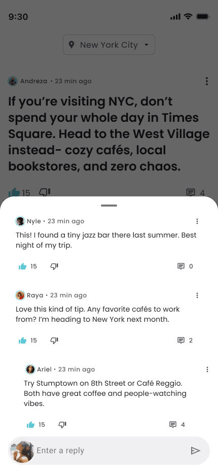 By allowing groups to create password-protected destinations, members can access all the tools that make Scapade unique: matching over shared interests, exploring local recommendations curated for their group, discovering posts relevant to their destination, and connecting with people who share their values.