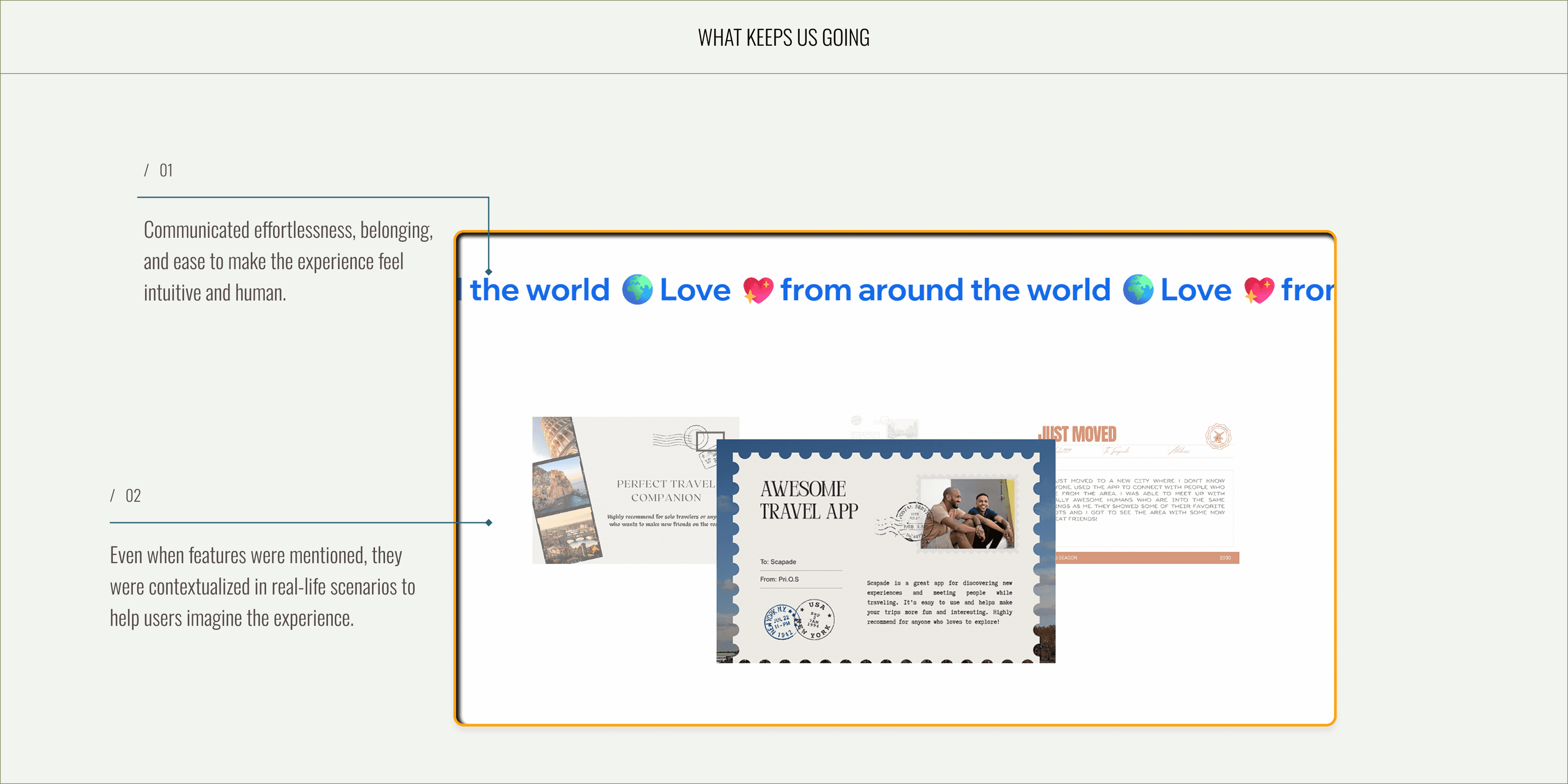 The final direction balances emotional resonance with practical clarity, positioning Scapade not just as a travel tool, but as a companion built by a truly global team.