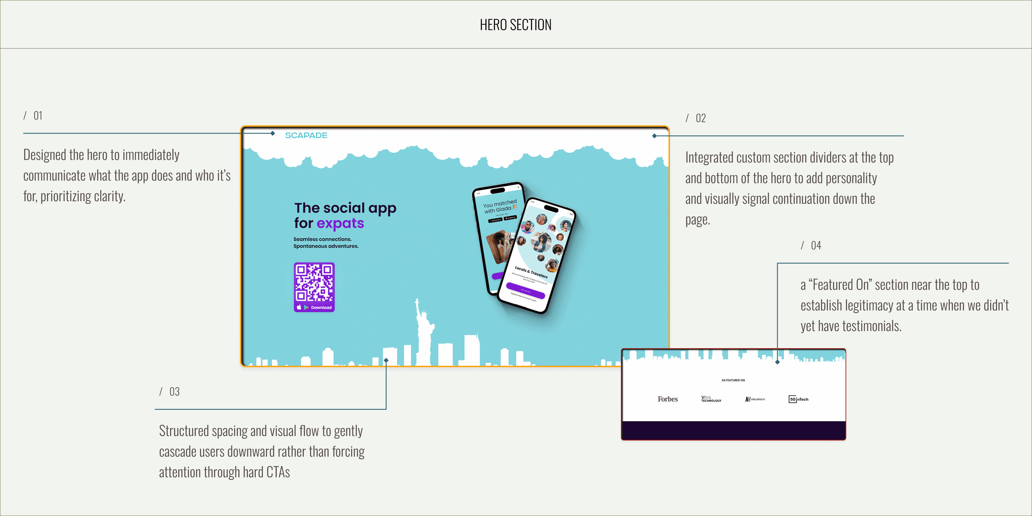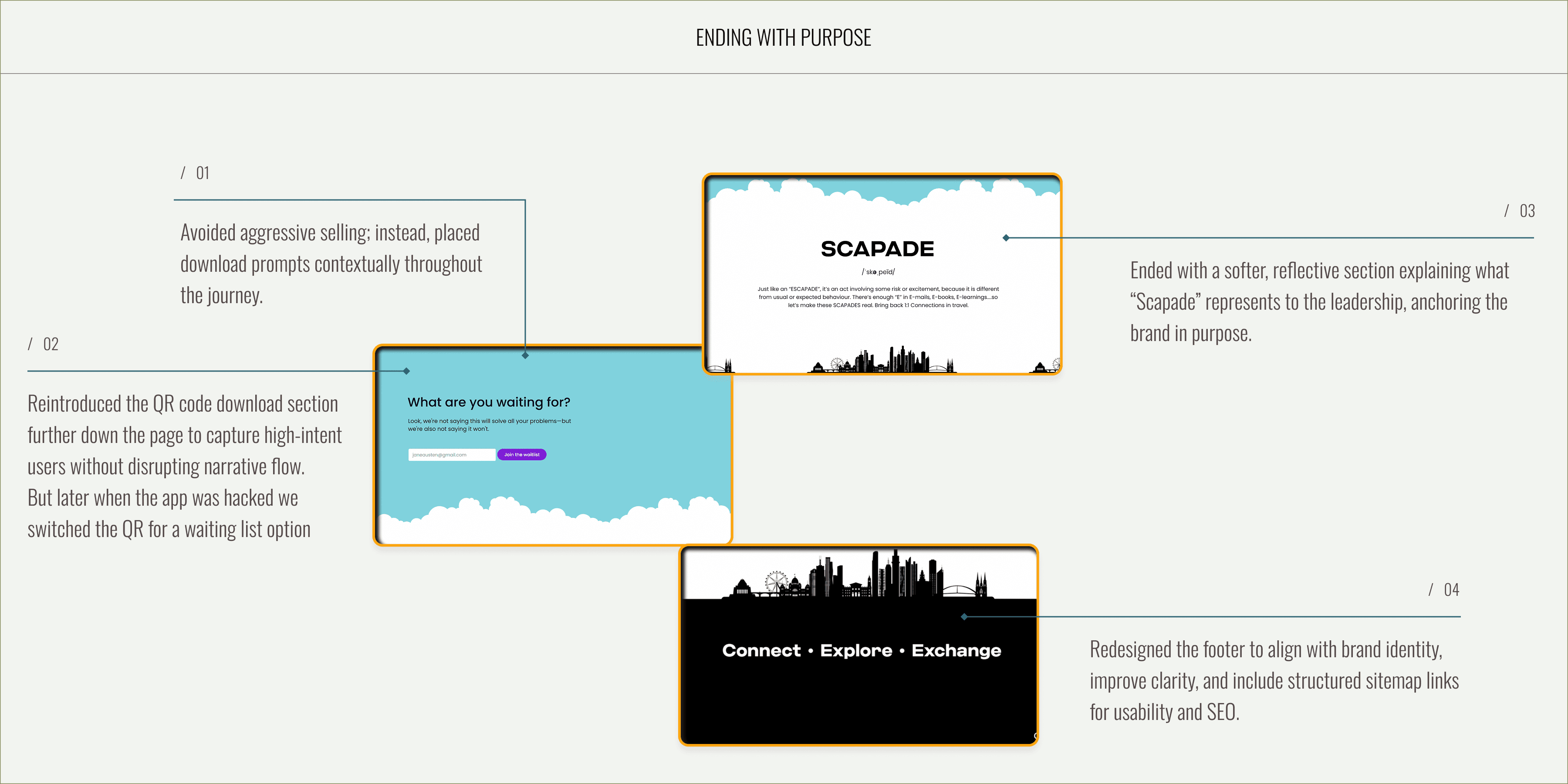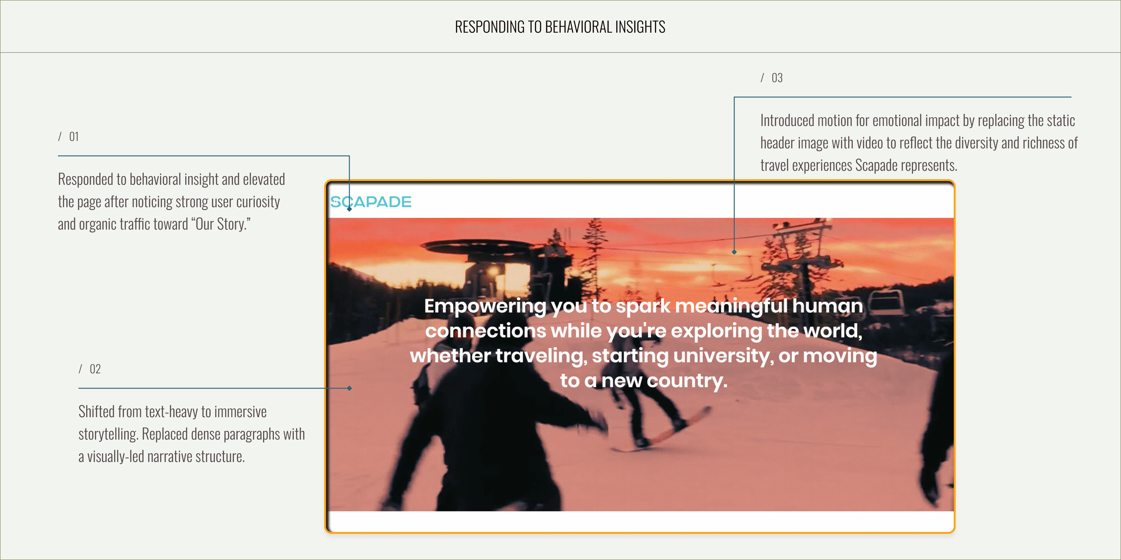 For Scapade’s landing page, the goal was to shift the narrative from listing features to communicating value.