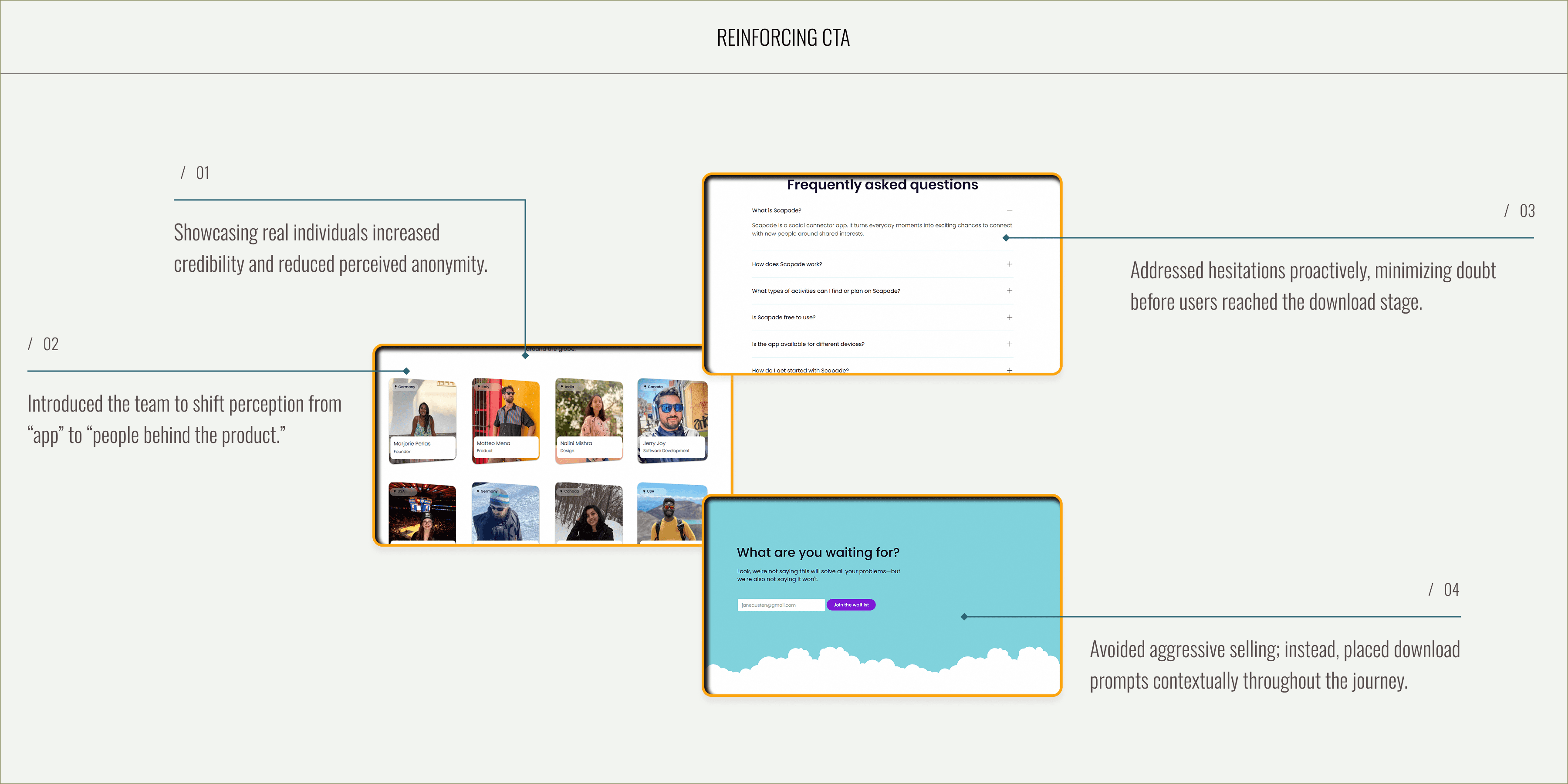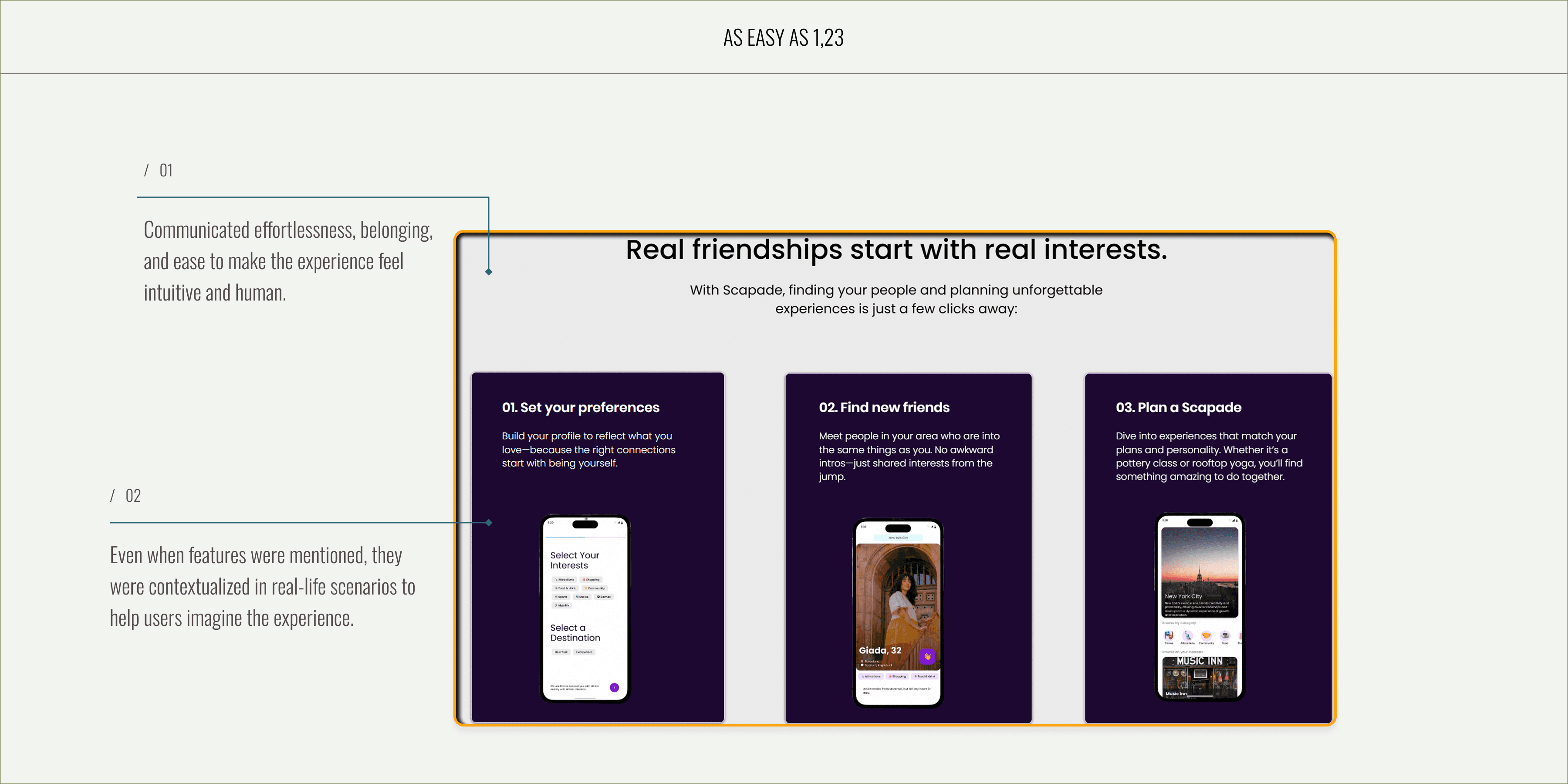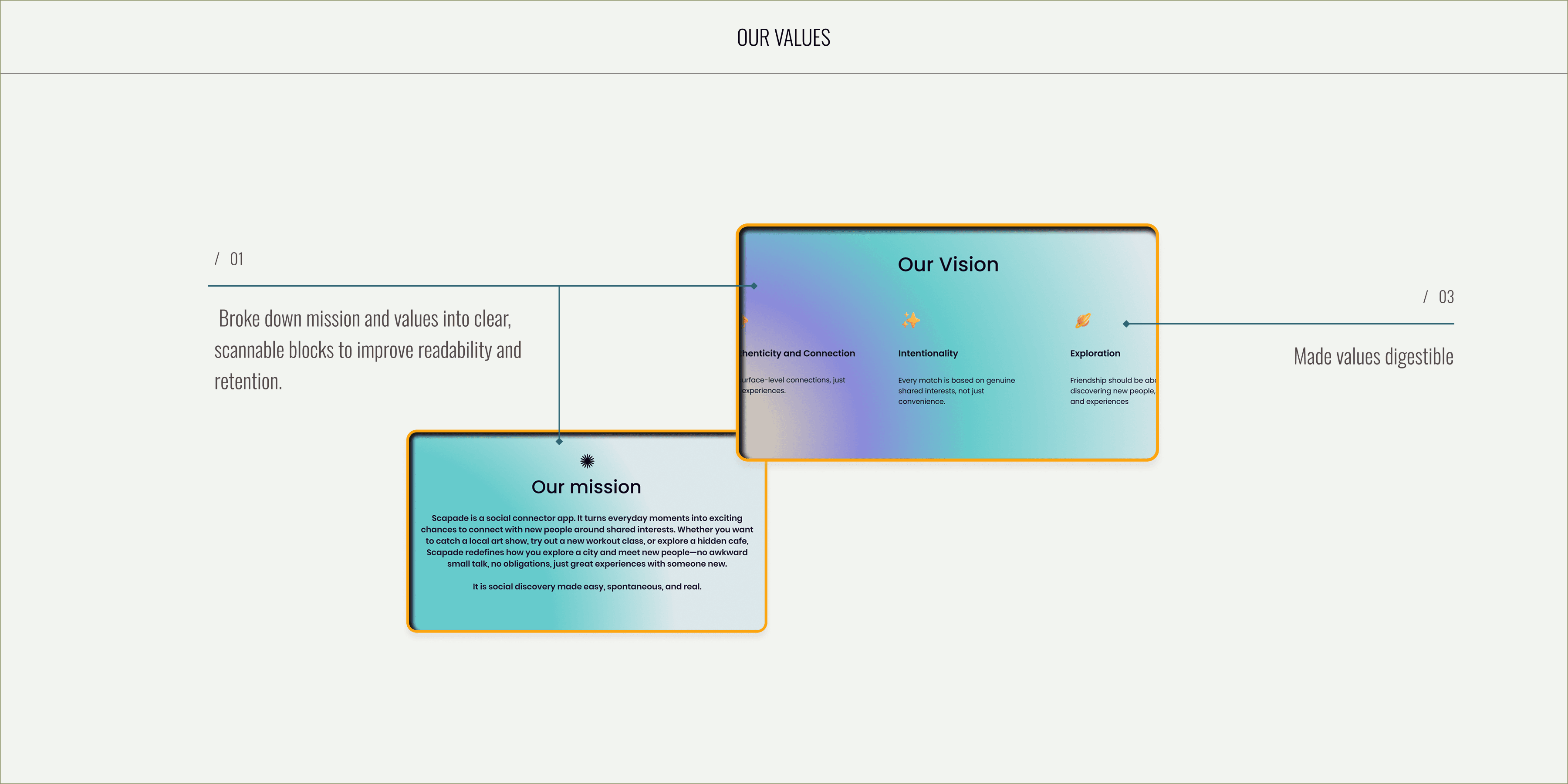 For Scapade’s landing page, the goal was to shift the narrative from listing features to communicating value.